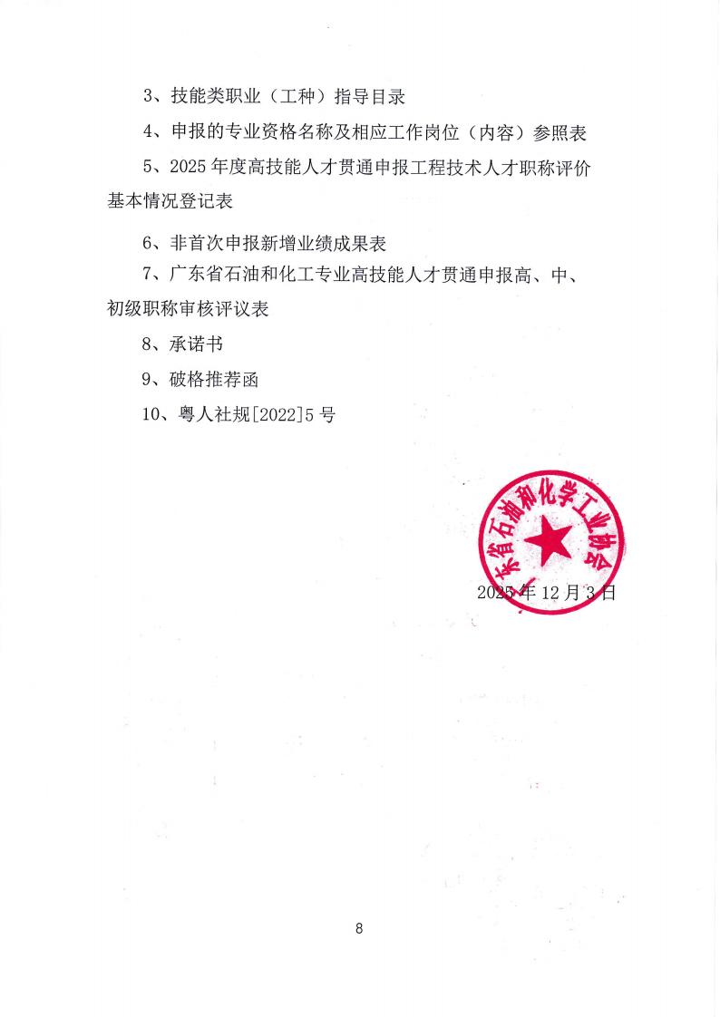 关于做好2025年度广东省石油和化工专业高技能人才与工程技术人才职业发展贯通申报评审工作的通知(粤石协[2025] 22号)