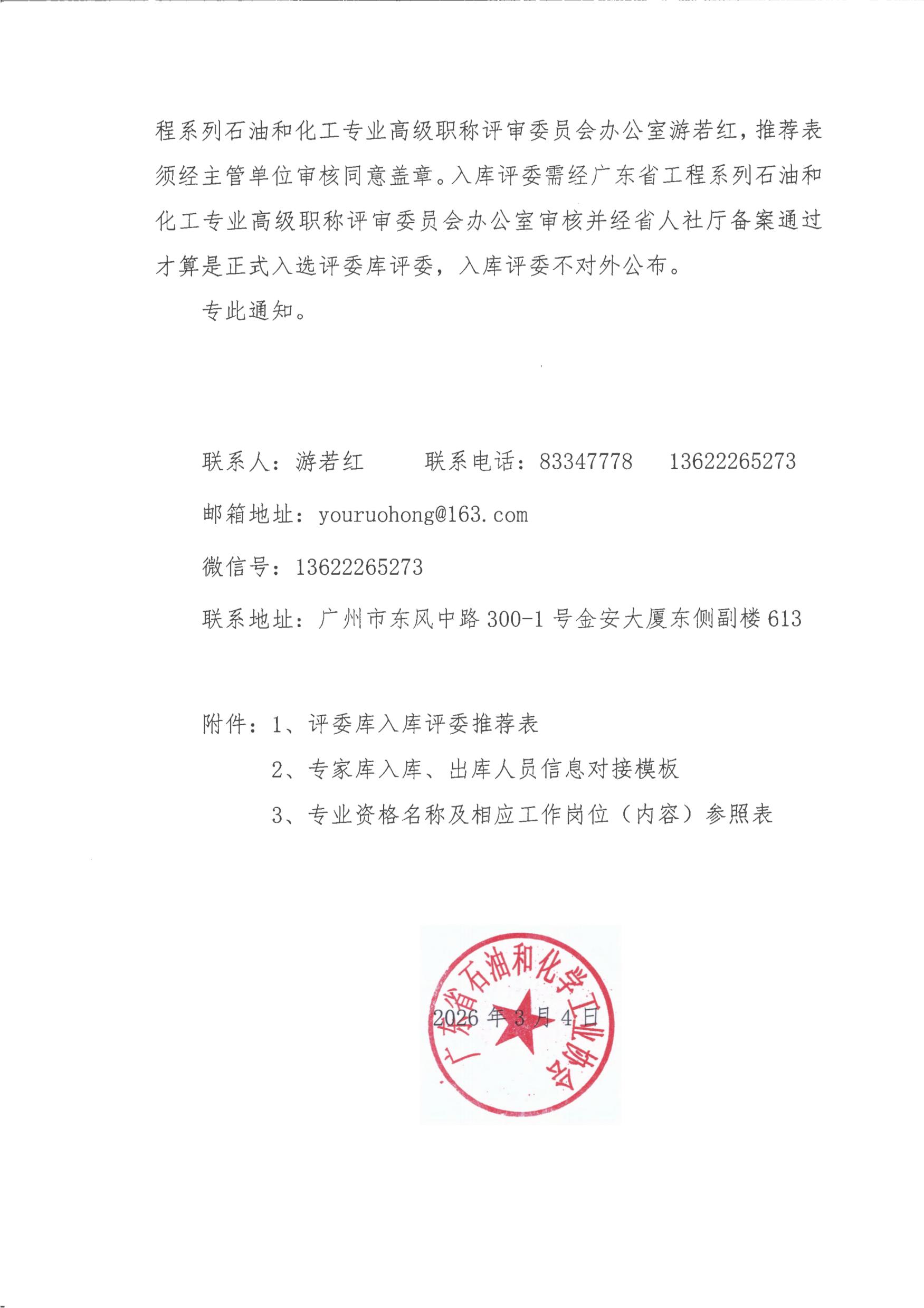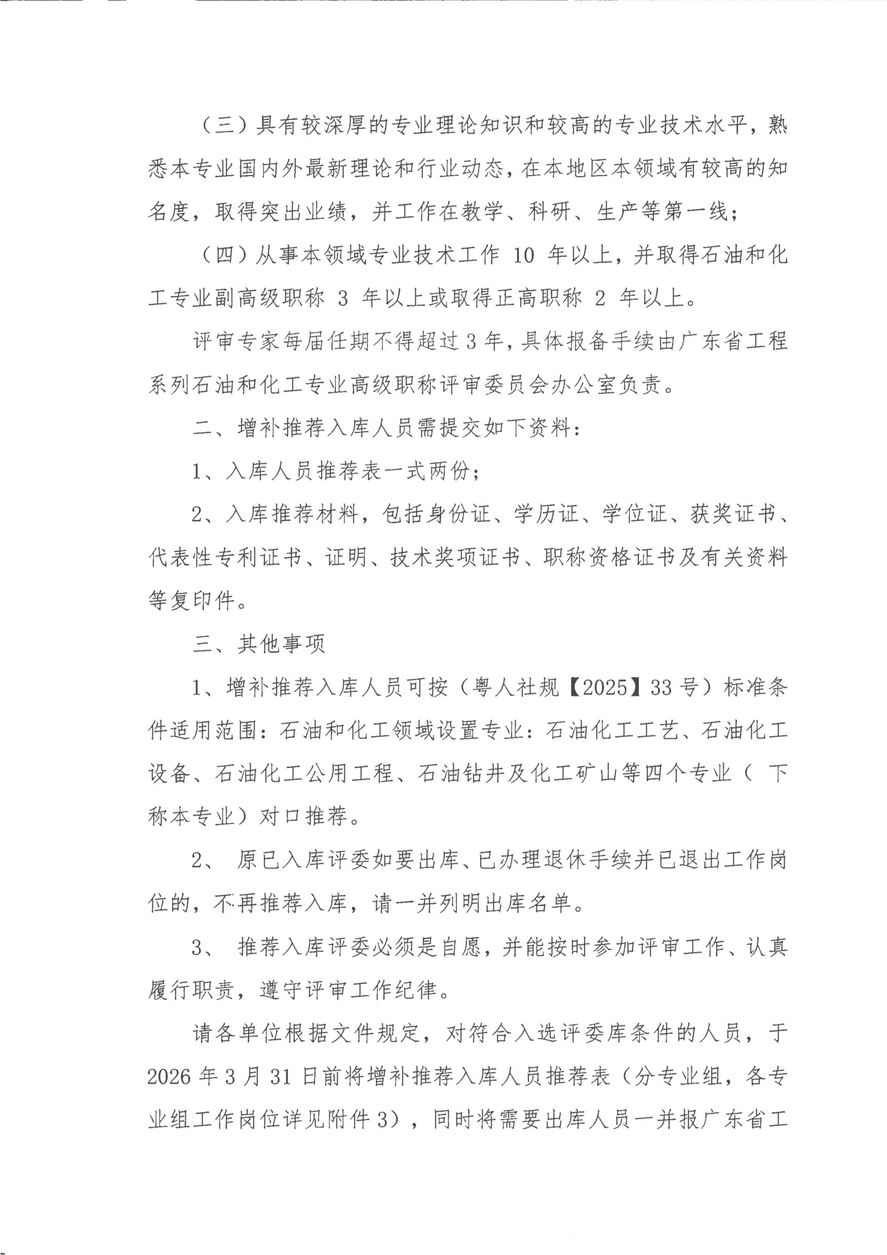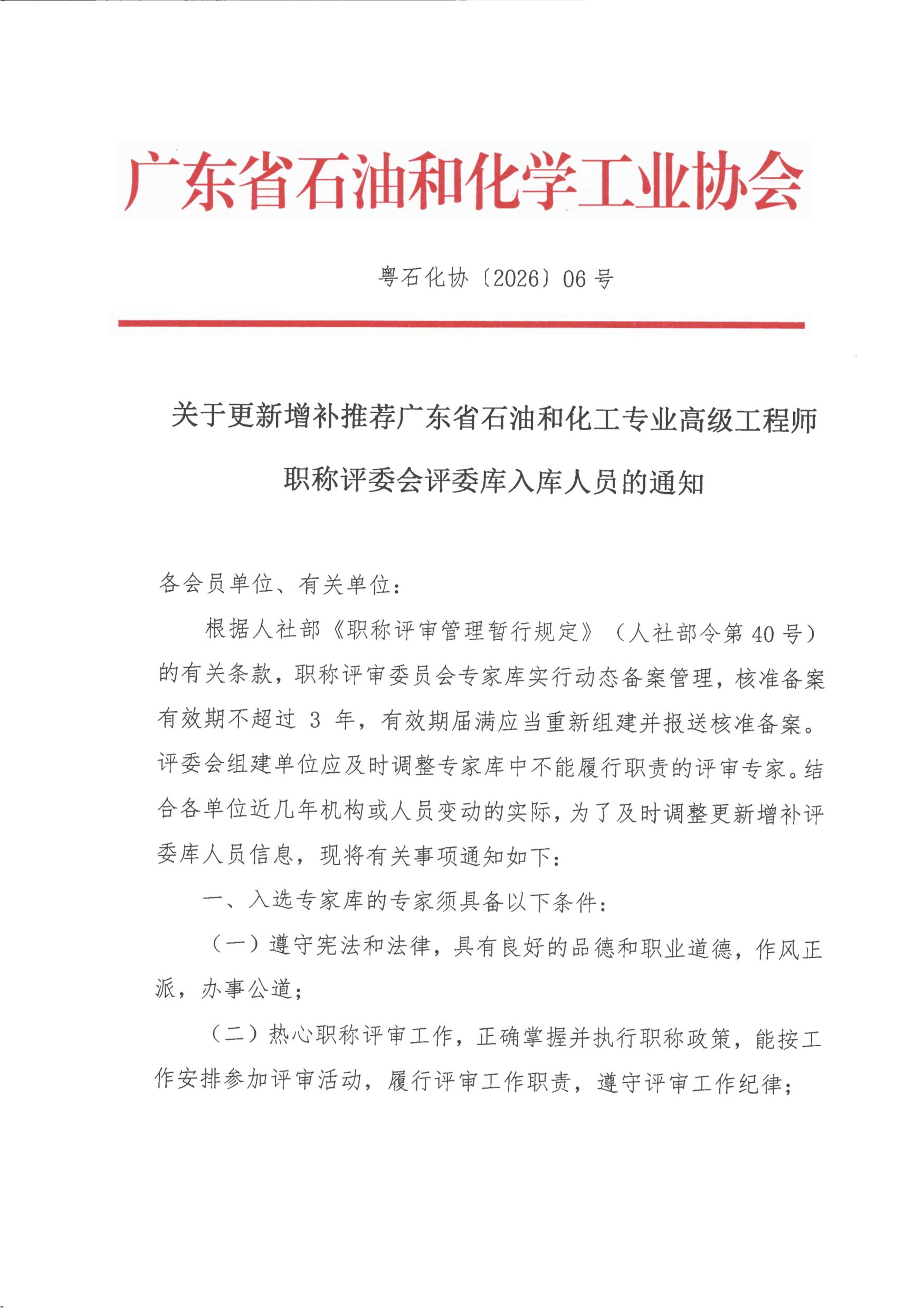 粤石化协[2026]06关于更新增补推荐广东省石油和化工专业高级工程师职称评委会评委评委库入库人员的通知
