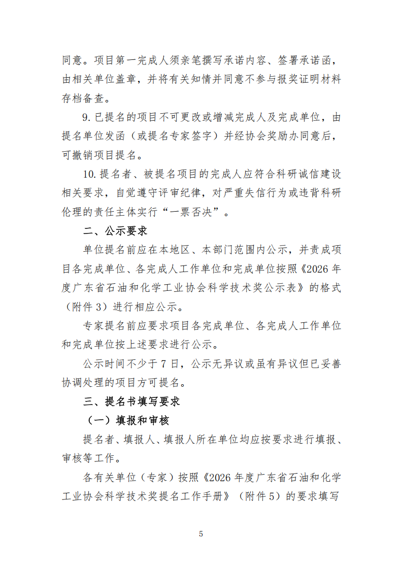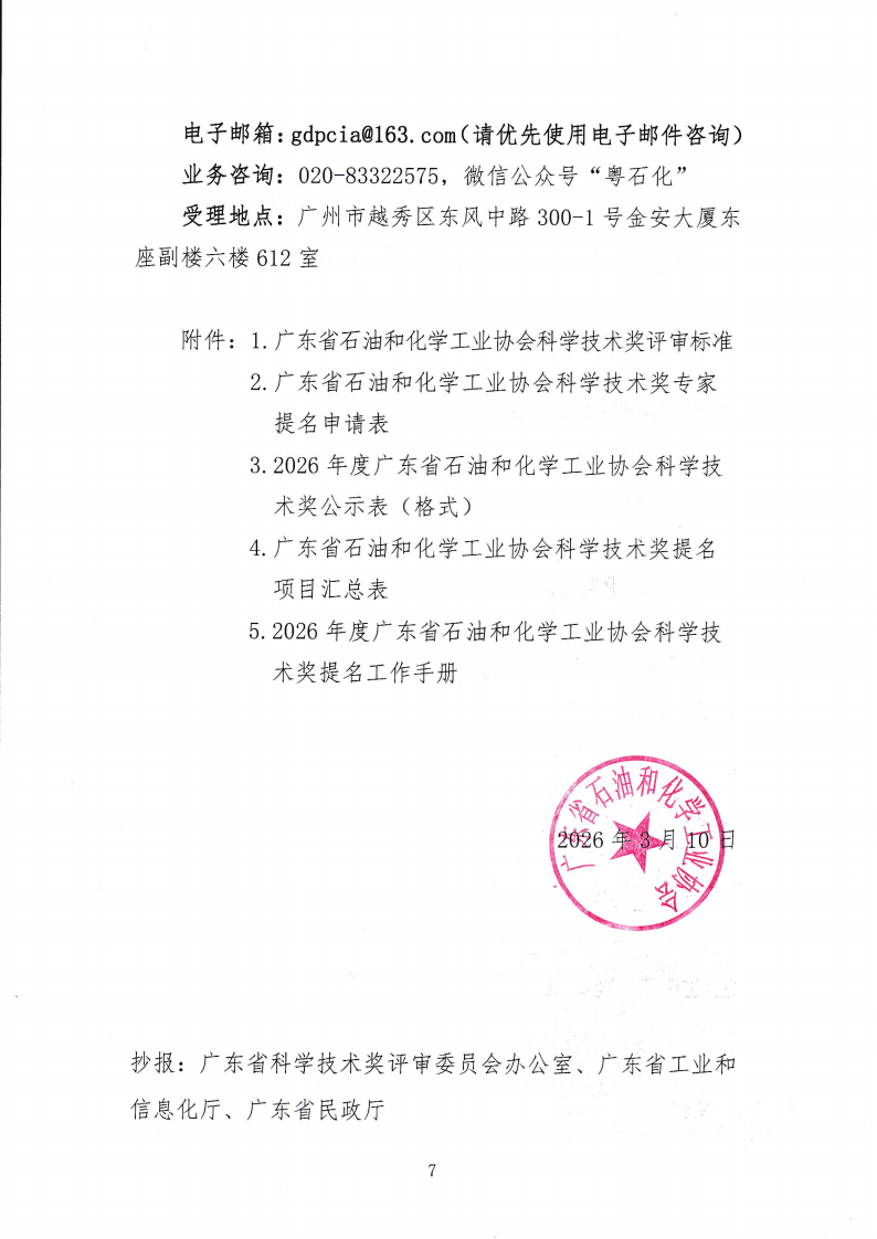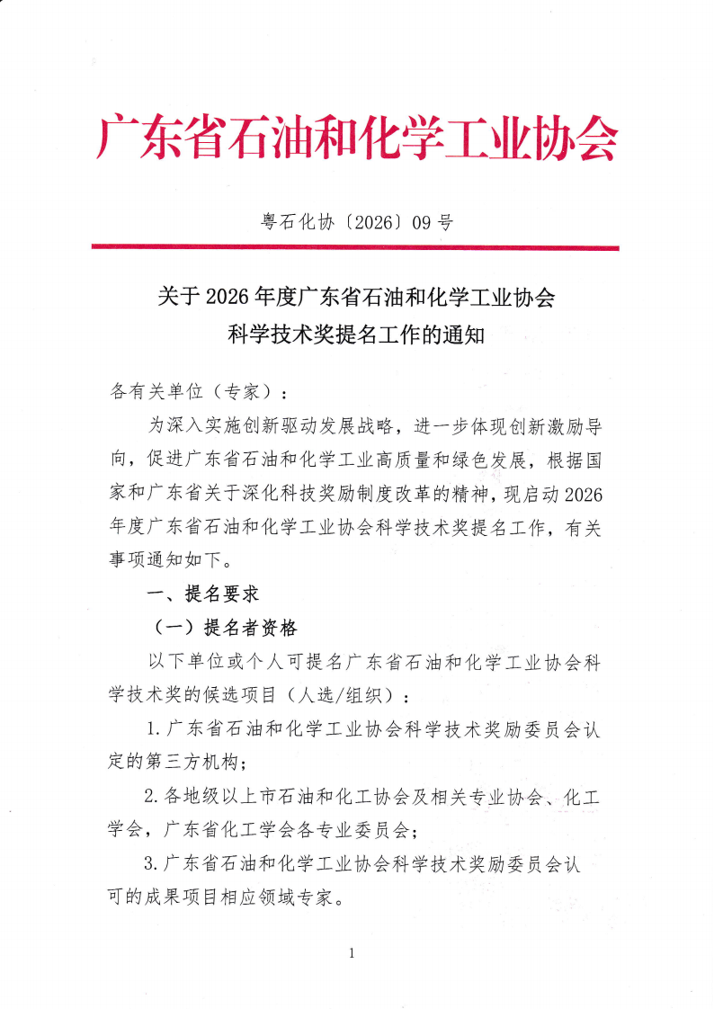 关于2026年度广东省石油和化学工业协会科技奖提名工作的通知